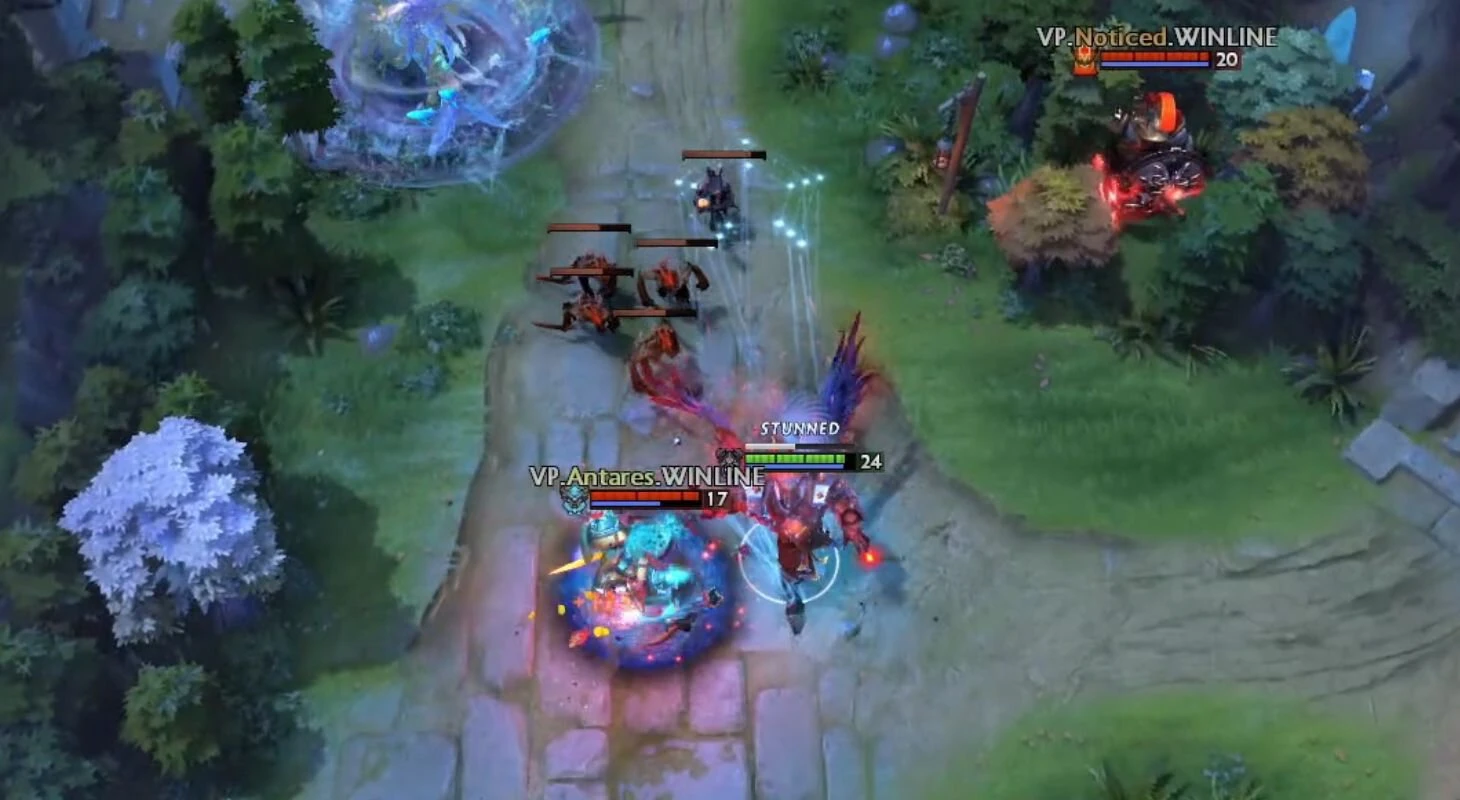 Под конец карты Антарес подпортил впечатление – совершил грубейшую ошибку. Коллапс заходит в лес VP и натыкается на Баратрума, который разгоняется в бот. Разумеется, Антарес отменяет разбег и разворачивается, но зачем-то сразу прожимает второй! Коллапс закономерно кидает во Владислава Винд Вэйкер, развеивает с него Булльдоз и дарит полноценный Дум. Смерть без байбэка.