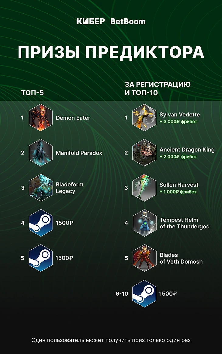 страховка предиктов: за весь турнир можно застраховать два предикта на сумму не более 500 000 монет. При верном прогнозе будет начислен полный выигрыш, а при неверном монеты просто вернутся.
