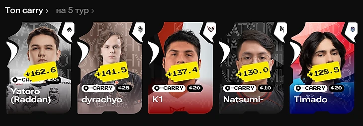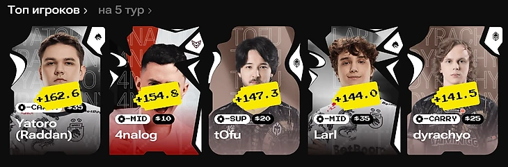 Больше Gabbi среди оффлейнеров за 5-й тур набрали только Коллапс и Эйс. И это с учетом того, что Blacklist скатала две ничьи. Ким, судя по всему, до сих пор не забыл свое прошлое на керри (чемпион мейджора), потому набивает вполне солидные баллы. Руки помнят!
