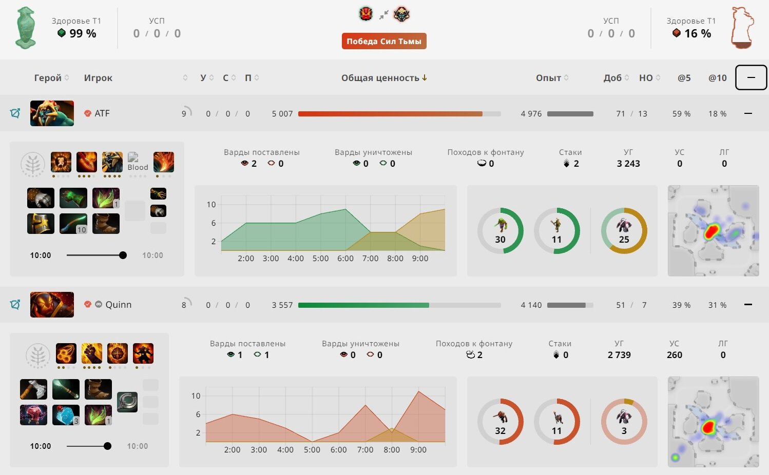 Итог: 28 минут, 28:10 в пользу Gladiators в классическом стиле команды – безумное давление со старта. ATF завершил матч с KDA 2-3-1 на выигранной линии. Эмбера-то закрыл и попортил крови Квинну, но выиграть и сделать большой импакт не смог. А Малрин без БКБ не выходил из сайленса от Орчида Дурачья или дизейблов GG.