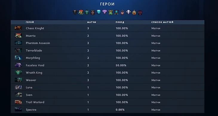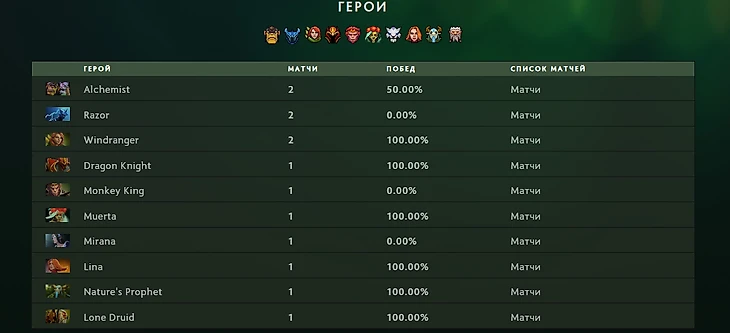 из списка выделяются разве что Муэрта и Лон Друид, но не стоит себя обманывать – у Антона на них 100%-ный винрейт! И неважно, что всего четыре игры на каждом.