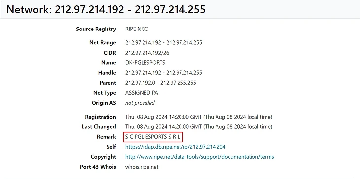Вся сетка IP 212.97.214.192 – 212.97.214.255, откуда поменяли строчки на Википедии, зарегистрирована на PGL Esports.