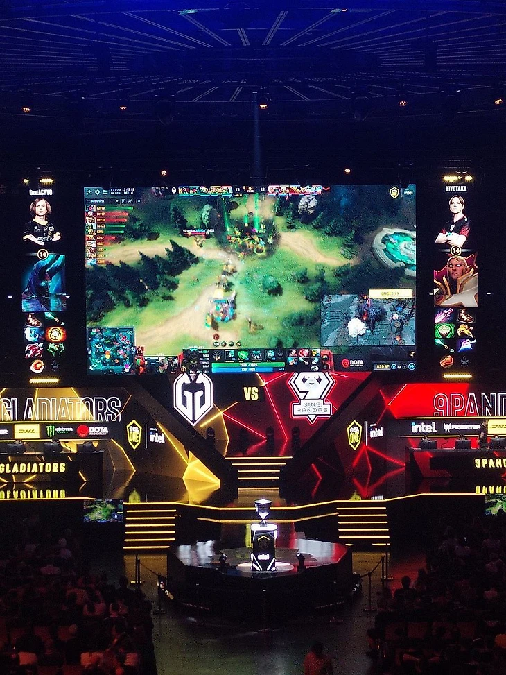 Про качество обзора я уже писала в одном из предыдущих постов. Организаторы повесили 3 больших экрана, расположив их буквой П. Из-за этого тем, кто сидел на 2-3-м уровне по центру и сбоку от центра было плохо видно предметы и вообще цифры. Мне же не хватило экранов, как у ESL, когда слева и справа от основного экрана расположены еще 5 узких, где показывают игрока, предметы, героя. А еще там красивые анимации ультимейтов.