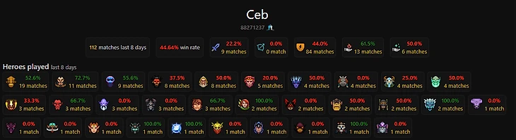 За последние 8 дней Себастьян сыграл 111 матчей на 8000+ MMR. На текущий момент это второй результат среди про-игроков. Его обошел только Stoic, саппорт из Турции – всего на 11 матчей.