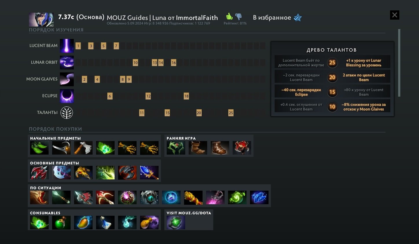 И все же большинство актуальных идей и концепций геймплея учтены, а задержка обновлений свойственна многим руководствам Доты.