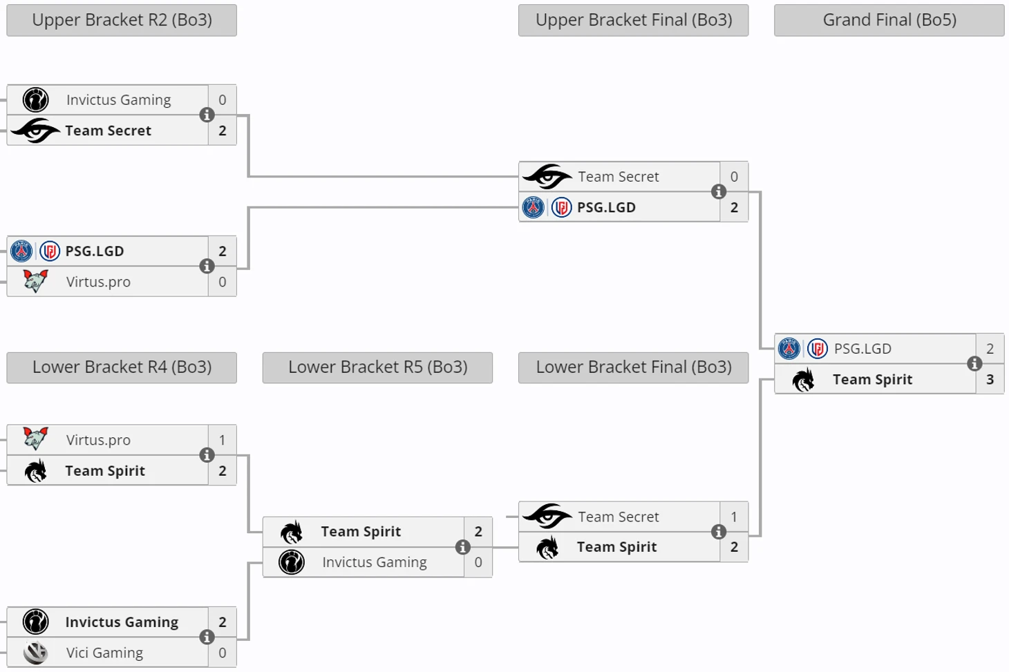 TI8 - поражения LGD (2 место) и EG (3 место). Liquid (4 место) сыграли с LGD и EG абсолютно также как VP, но из-за сетки у VP не было шанса сразиться с ними за желанное место.