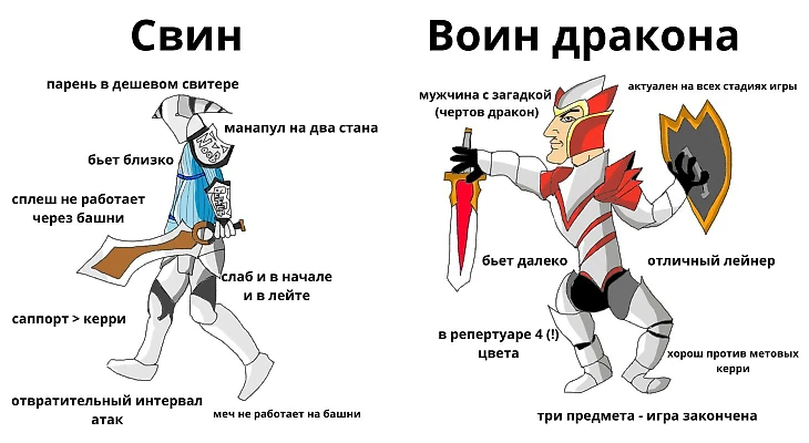 Часть героев в Доте взаимозаменяемы. Нормально, когда персонажи выполняют схожие функции и задачи, при этом имеют разные недостатки. Вариативность, гибкость на драфтах – этим Дота и подкупает.