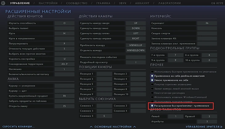Теперь возвращаемся в «Основные настройки», под предметами выбираем «Быстрое» и назначаем кнопку на слот, в котором будет лежать Армлет.