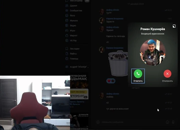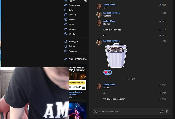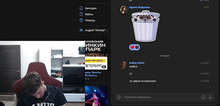 С открытым чатом Андрей заснул прямо на стримерском кресле. Даже очки не выдержали и упали. В этот момент на стриме играла песня со словами «Засыпаешь, но не со мной».