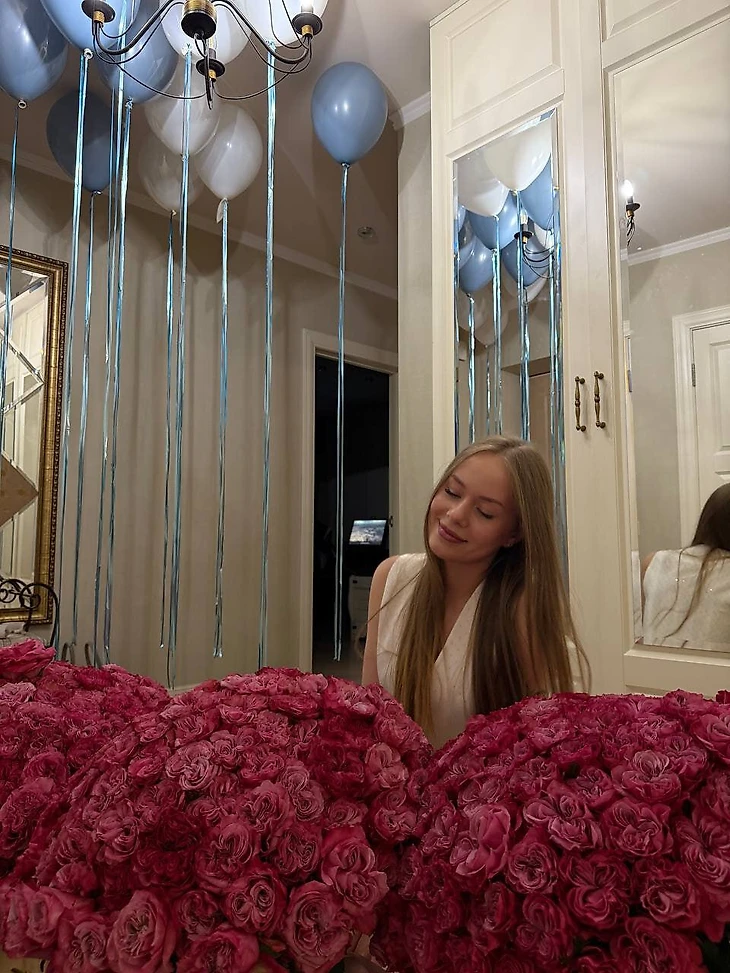 13 апреля Стас поздравил девушку с днем рождения – и опубликовал ее фото с тремя роскошными букетами роз.