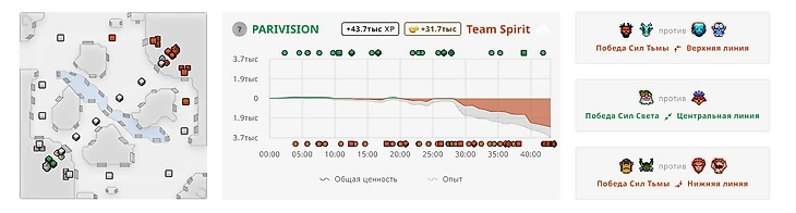 С самого начала игры у Spirit все получалось. Любое действие, любой размен был не в пользу PARIVISION. Парни планомерно отдавали территорию, Spirit же с первым Рошаном захватила всю карту, а со вторым – снесла топ: