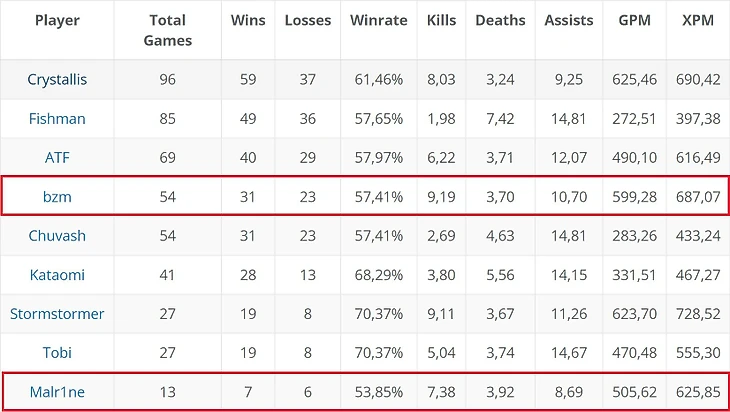 И у Божидара в 4 раза больше матчей за Creepwave, чем у Стаса! Очевидно, он истинный и сильнейший мидер золотого состава команды.