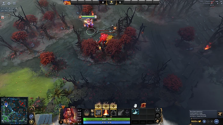 А большой кемп теперь не отгорожен деревьями от сил Тьмы. Наконец-то линия в топе стала похожей на бот. Саппорту Дайр стало намного проще драться за большой лагерь.