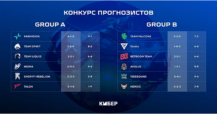 При равенстве очков у двух или более участников выше в рейтинге будет стоять тот, кто угадал больше точных счетов. При равенстве этого показателя выше окажется тот, кто угадает больше исходов сначала в матчах формата bo3, затем – в формате bo2. При равенстве всех показателей выше будет участник, который оставил прогноз в первый день раньше по времени.