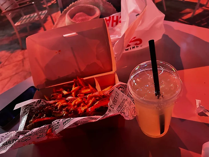 Оставалось только перекусить и отправляться все это исследовать. Кстати, о еде: огромное количество фастфуда. Здесь я увидел, наверное, самый большой фуд-корт в моей жизни. Еда недорогая, порции большие. Вот такая картошка с хот-догом и напитком обошлись мне в около 40 риялов (~800 рублей).