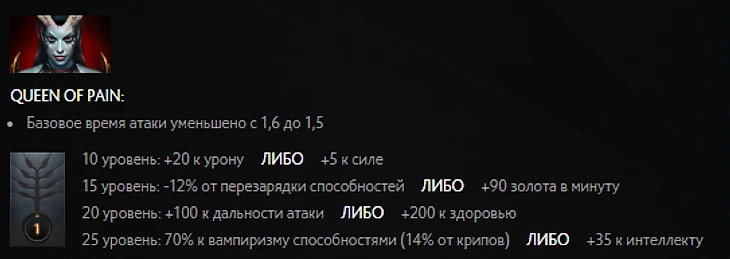 Для примера: здесь древо талантов Queen of Pain в патче 7.00: