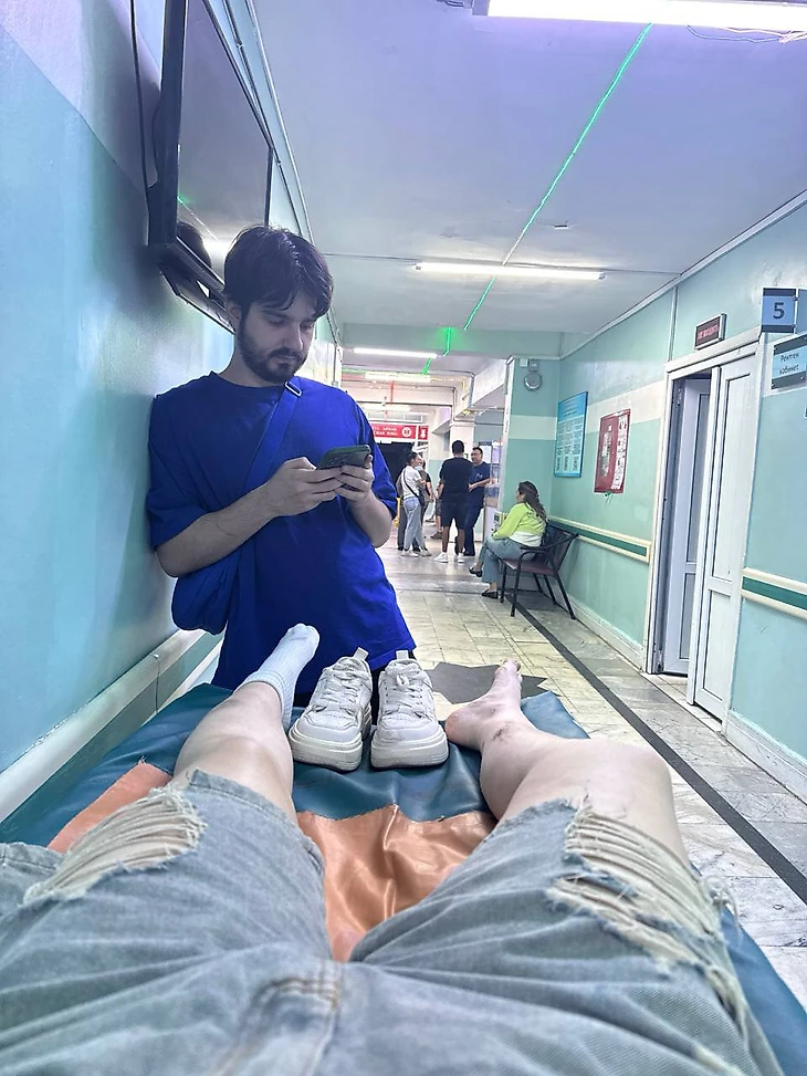 «Меня привезли на скорой в больницу. Такие тут хорошие медсестрички-казашки, с такой заботой обходятся. Одна вообще меня везла на каталке и говорила, что она мой водитель личный в «Яндекс Такси» теперь. Отправили на рентген, скоро узнаю – перелом или все обошлось. Болит очень сильно. Ходить не могу, ногой двигаю с трудом.