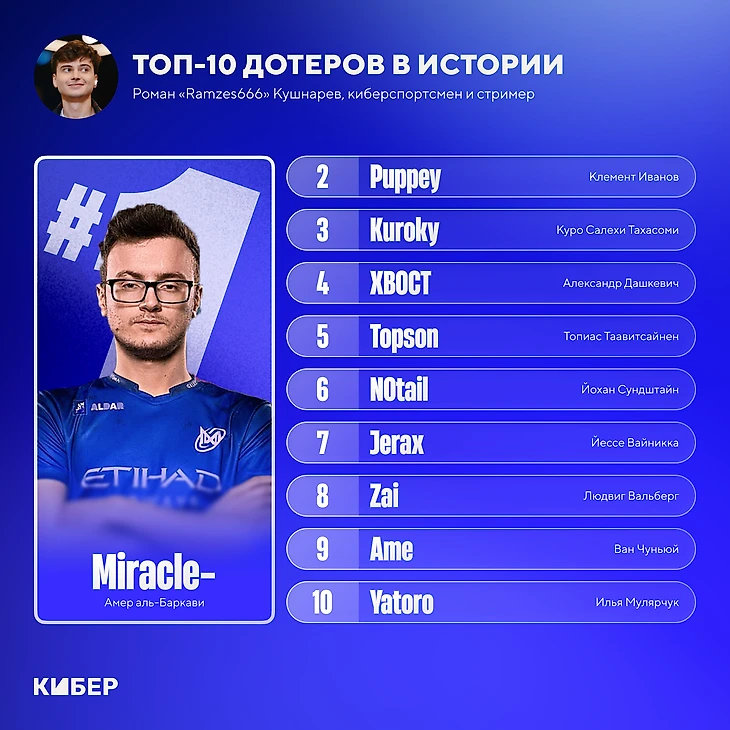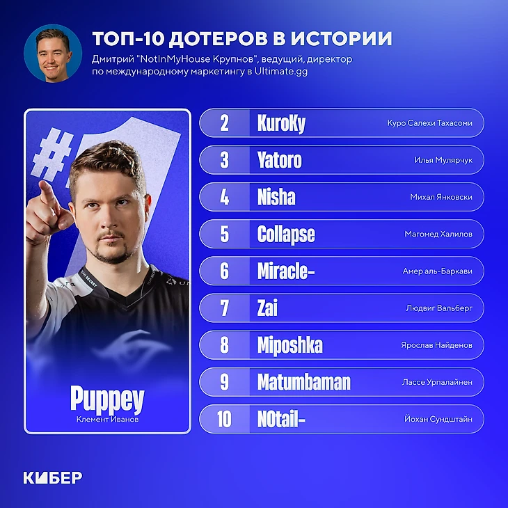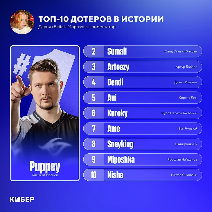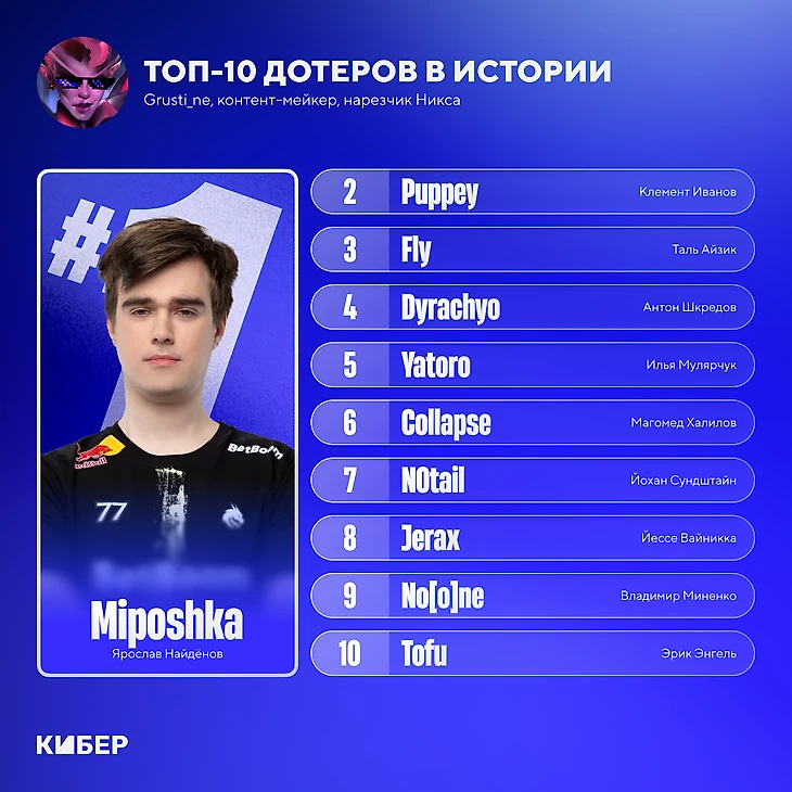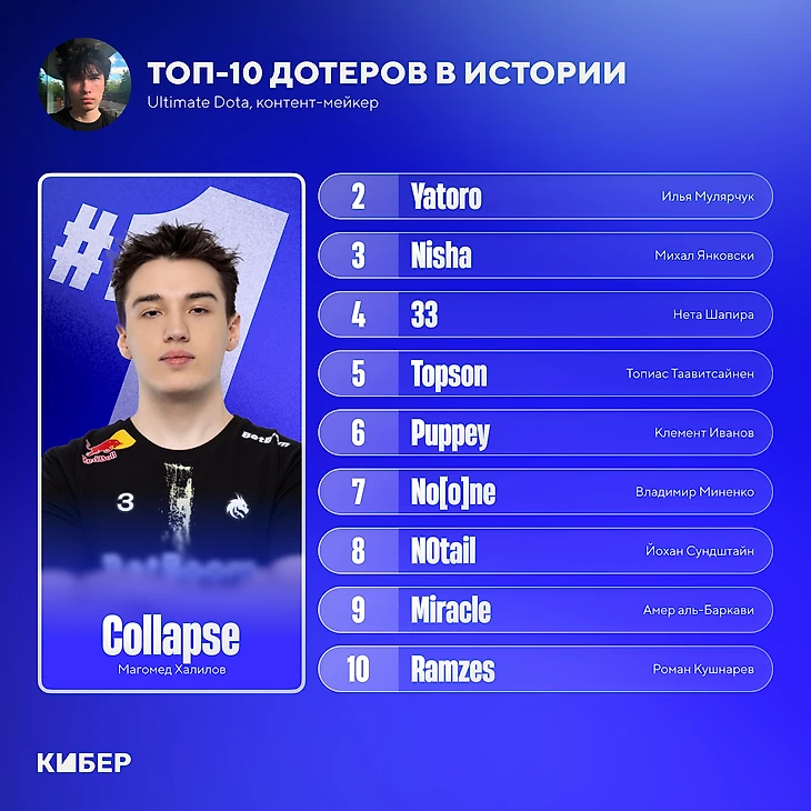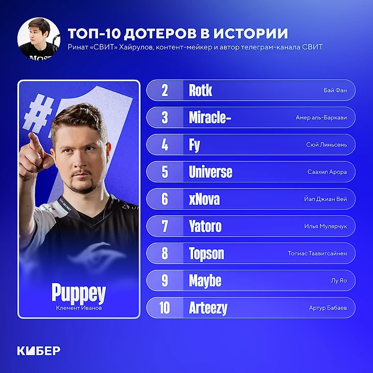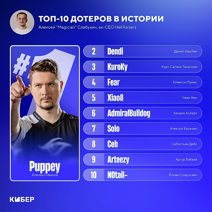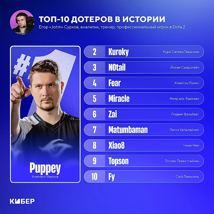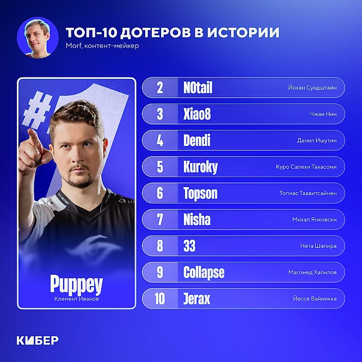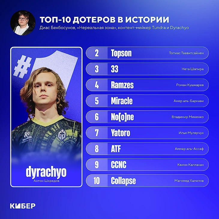 Мы выпустили топ-30 лучших дотеров в истории – рейтинг игроков, которые навсегда изменили Доту. В жюри вошли профессиональные игроки, аналитики, стримеры и редакция Кибера.