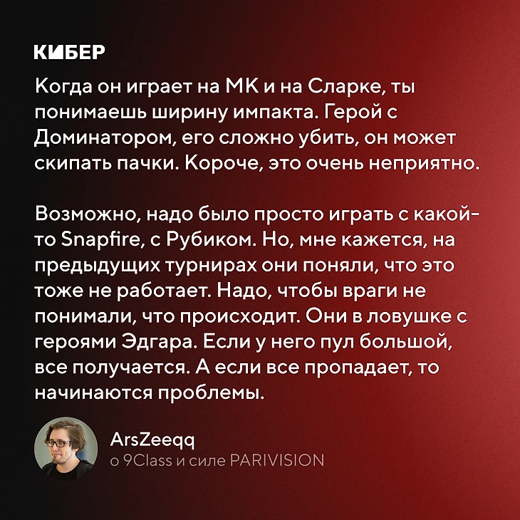 – Слушай, ну, вот они же брали этого Кентавра. По сути, гнули линию свою – продолжали пикать 9Классу то, на чем ему по кайфу играть. И это же буквально был еще один крип на карте.