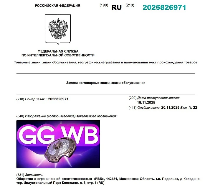 20 ноября стало известно, что онлайн-гипермаркет Wilberries зарегистрировал в Роспатенте торговый знак GG WB.