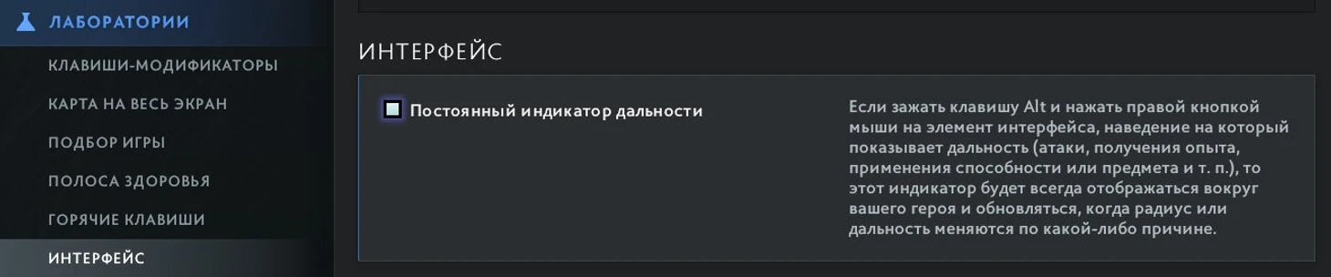 Она называется «Постоянный индикатор дальности», и вы найдете ее, перейдя в пункт «Лаборатории» в настройках игры, а затем – в подпункт «Интерфейс».