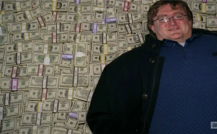 На фото В ыможете видеть генерального директора Valve Гейба Ньюэлла. Деньги, возможно, добавлены при помощи фотошопа.