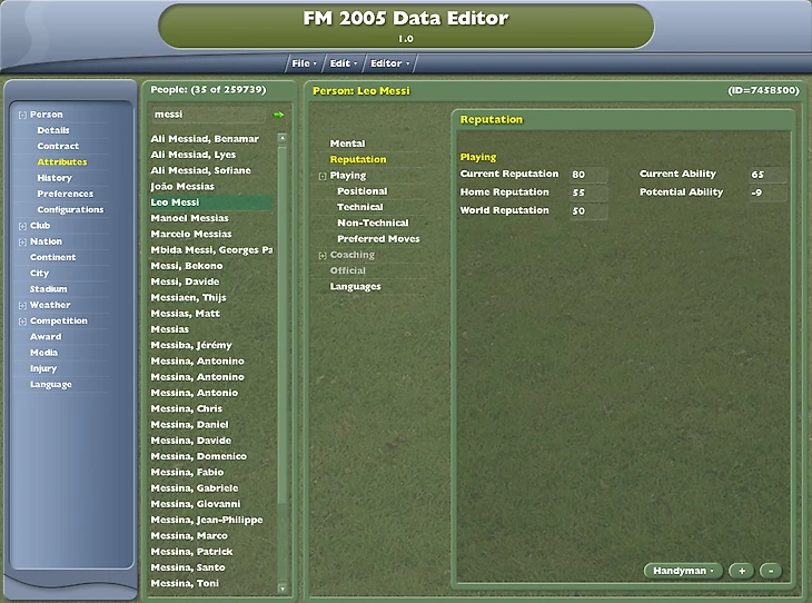 Что же насчет Месси? Он нашелся гораздо позже, лишь в Football Manager 2005, который вышел в октябре 2004. Буквально в тех же числах дебютировал за основной состав «Барселоны» и Лео Месси.