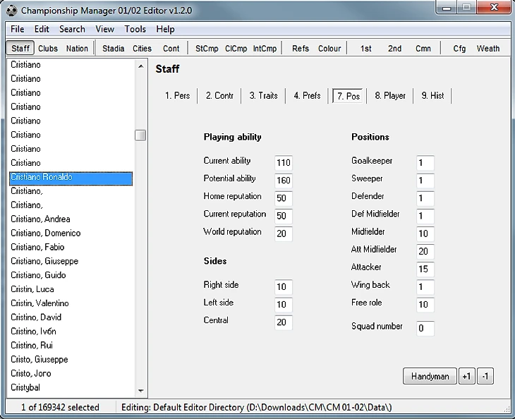 Порывшись в редакторе, можно найти и потенциальное умение Криштиану. 160 из 200, отличный прогноз. Игрока в 17 лет скауты слегка недооценили, но кто мог знать, что в будущем из него вырастет такой монстр?