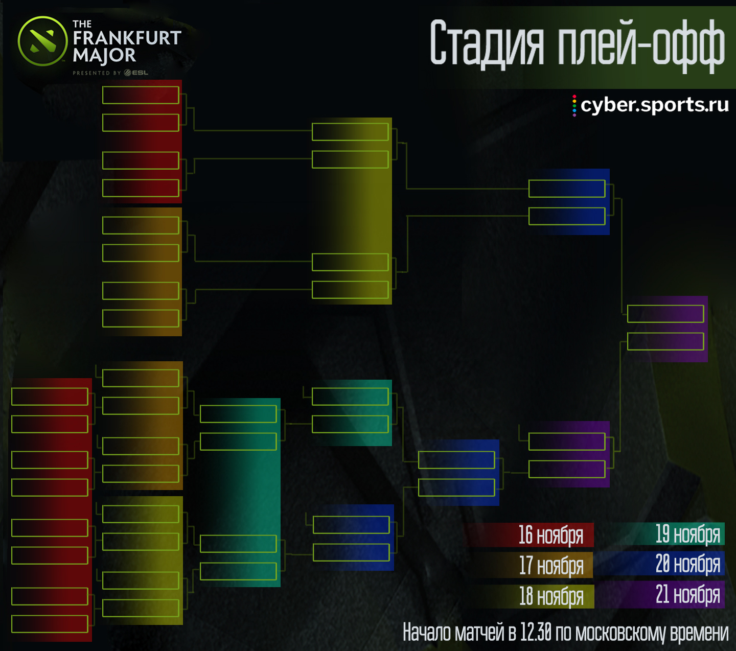 Основная стадия чемпионата пройдет с 16 по 21 ноября. Каждый день нас ждут от двух до шести матчей, каждый день турнир будут покидать как минимум 2 участника.