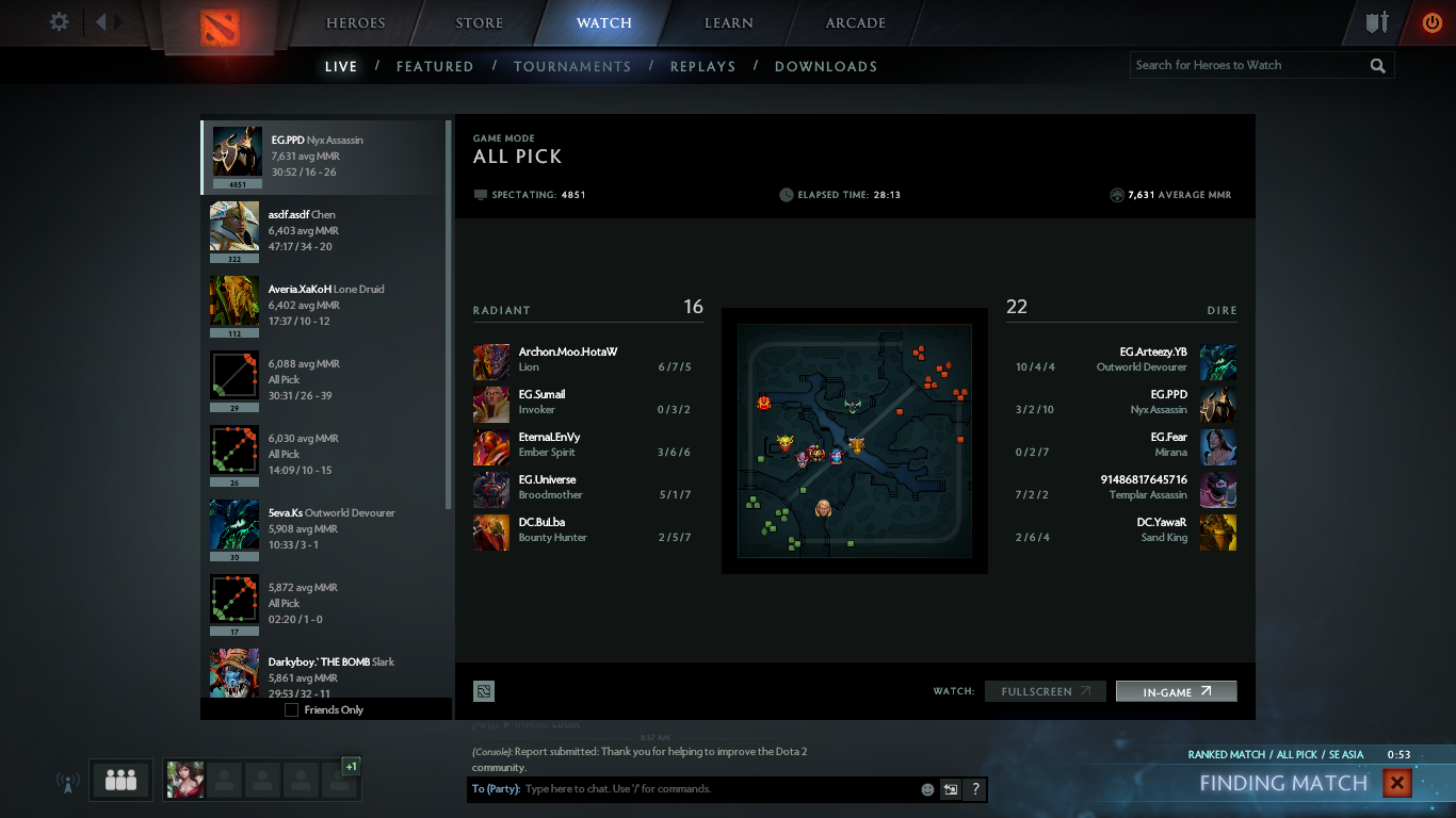Просто обычная игра вечерком в Америке в пабе. 7.6k средний mmr