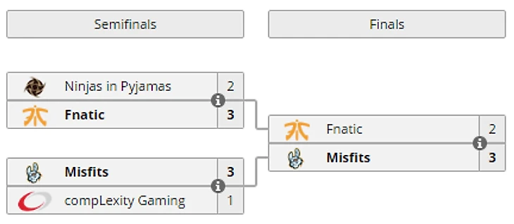 Misfits победила в финале DreamHack Winter 2016 по Overwatch, одолев Fnatic со счётом 3:2. Новоиспечённые чемпионы заработали 30 тысяч долларов, Fnatic – 10 тысяч. Команды уже встречались на групповой стадии турнира – тогда победу тоже одержала Misfits.