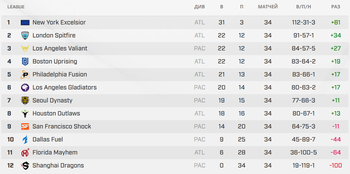 Overwatch League. New York Excelsior, Los Angeles Gladiators и Los Angeles Valiant идут без поражений