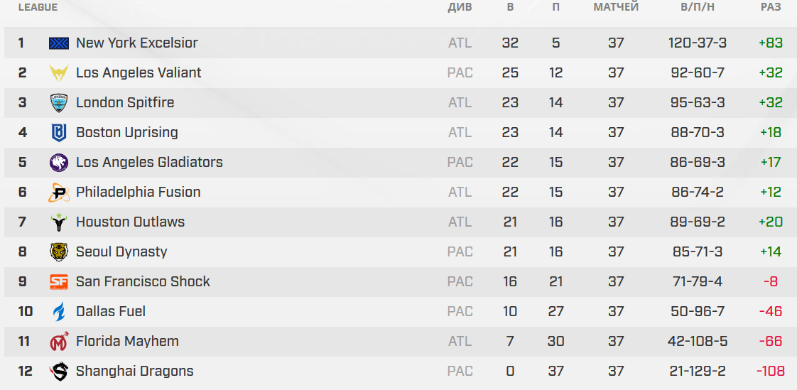 Shanghai Dragons проиграла все свои матчи Лиги Overwatch, состав сыграл 37 матчей.