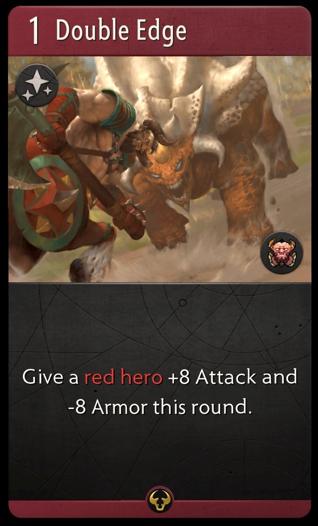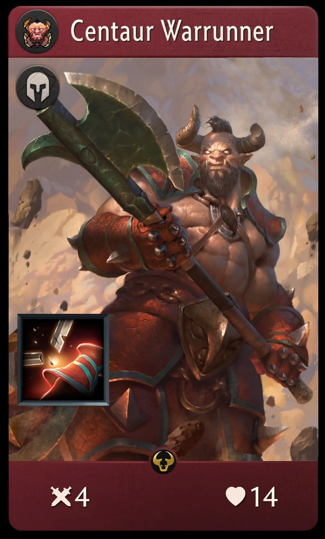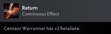 Centaur Warrunner. Double Edge: Дает красному герою +8 Атаки и -8 Брони до конца хода.Centaur Warrunner. Return: Centaur Warrunner имеет +2 к контратаке.