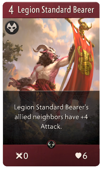 Красное существо Legion Standard Bearer: Соседние союзники получают +4 к Атаке.