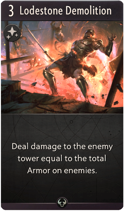 Lodestone Demolition. Черное улучшение, наносящее вражеской башне урон, равный суммарной броне противников.