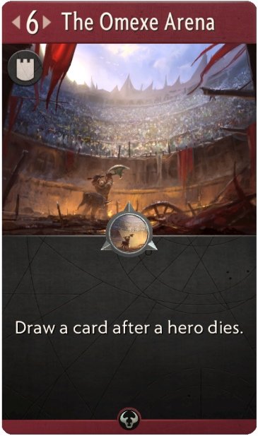 The Omexe Arena. Красное улучшение. Вытягивает карту после того, как герой погибает.