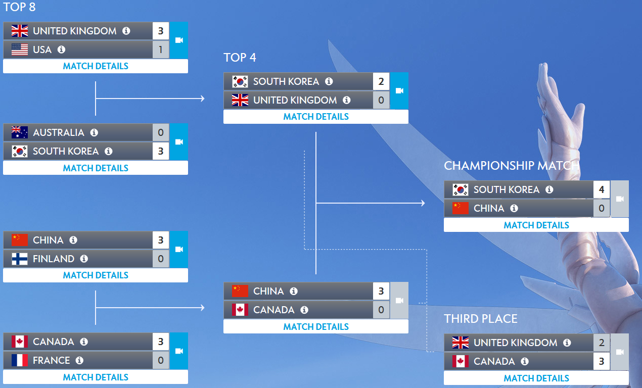 В заключительном этапе сразились сборные Южной Кореи, Финляндии, США, Канады, Китая, Австралии, Франции и Великобритании.