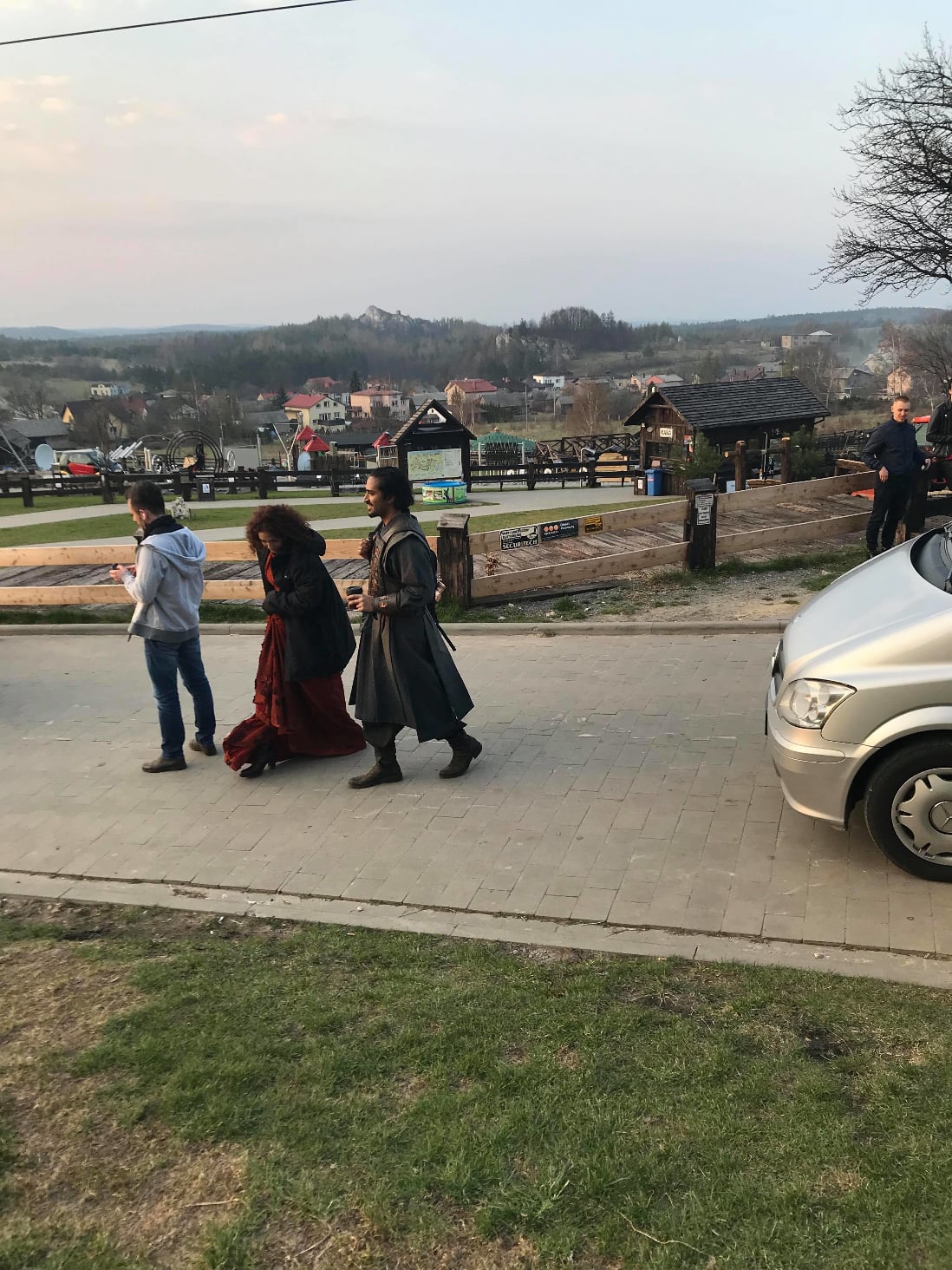 В кадр попали Махеш Джаду (Вильгефорц) и Анна Шаффер (Трисс Меригольд). Также были опубликованы фотографии декораций. Снимки были сделаны в апреле.