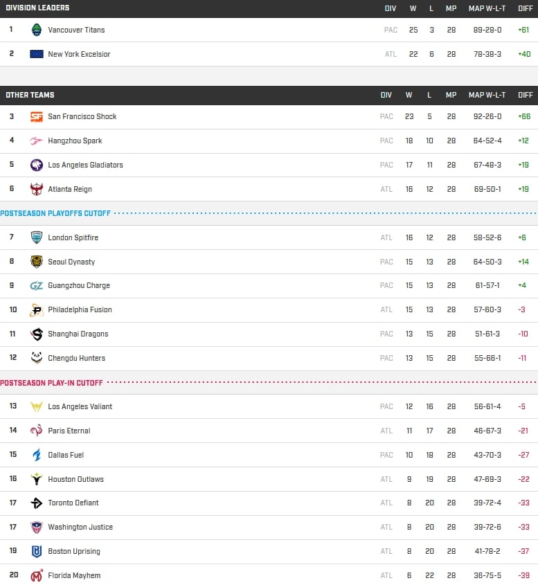 Первый этап выиграли Vancouver Titans, второй – San Francisco Shock, победителями третьего стали Shanghai Dragons.
