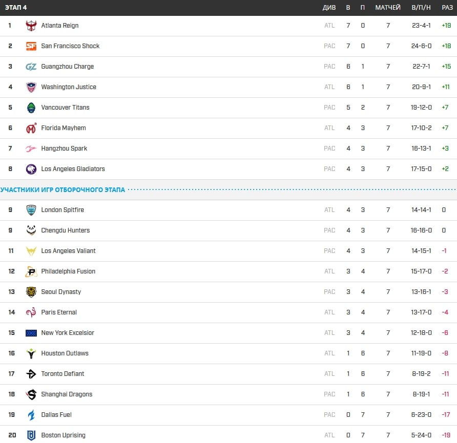 13 сентября2:00 Atlanta Reign 0-4 Hangzhou Spark5:00 Los Angeles Gladiators 0-4 San Francisco Shock 14 сентября