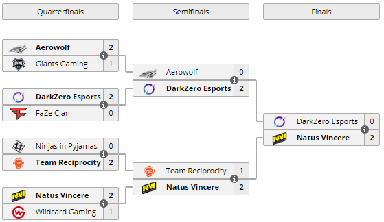 Участники: Natus Vincere, Giants Gaming, DarkZero Esports, Team Reciprocity, Ninjas in Pyjamas, Faze Clan, Aerowolf, Wildcard Gaming