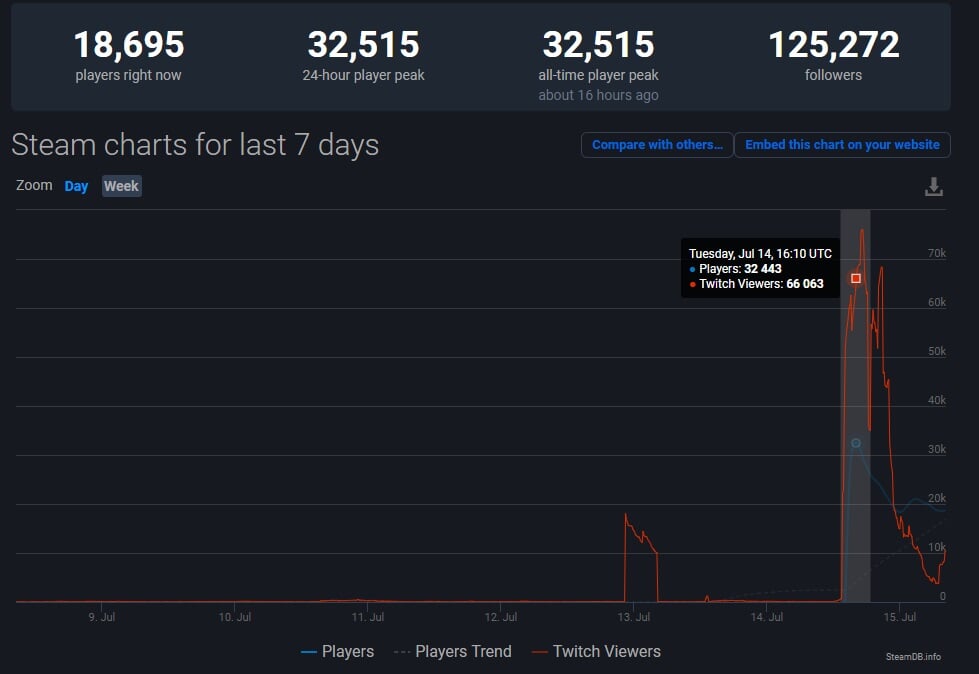 После релиза Death Stranding в Steam пиковый онлайн преодолел отметку в 30 тысяч игроков.