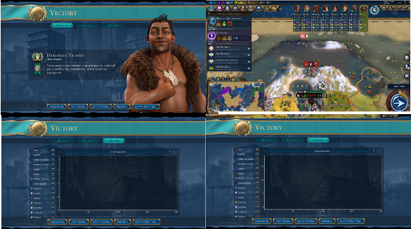 Для победы на четвертом уровне сложности игрок использовал тактику с дипломатией. Матч завершился за 178 ходов.