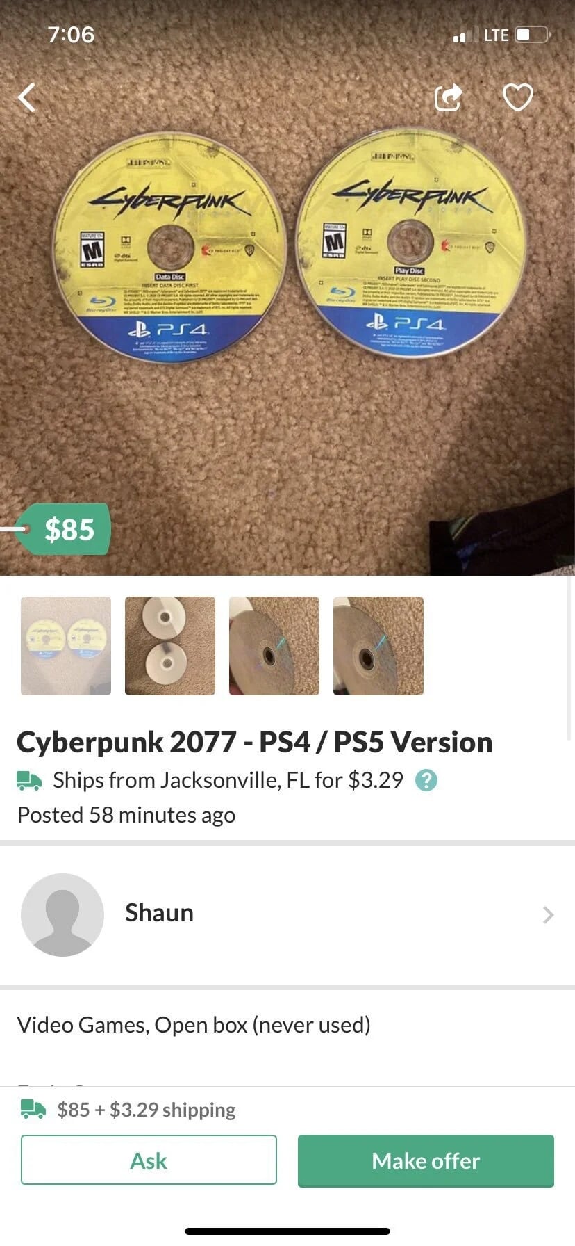 Игрок пытается продать диск Cyberpunk 2077 для PS4 за 85 долларов