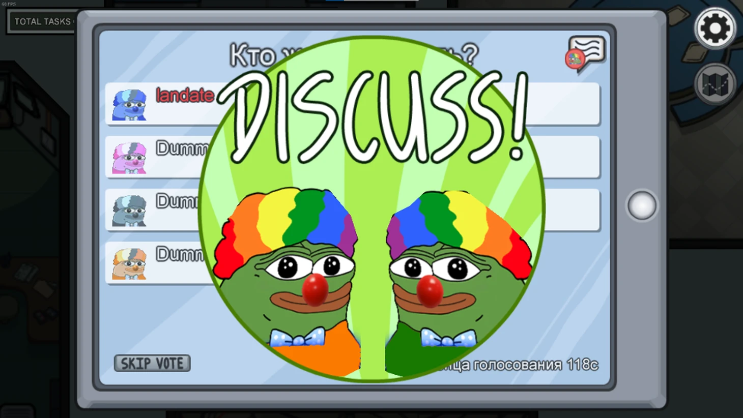 Моддер landate создал модификацию для Among Us, которая заменяет иконки и персонажей в игре на лягушонка Пепе в образе клоуна.