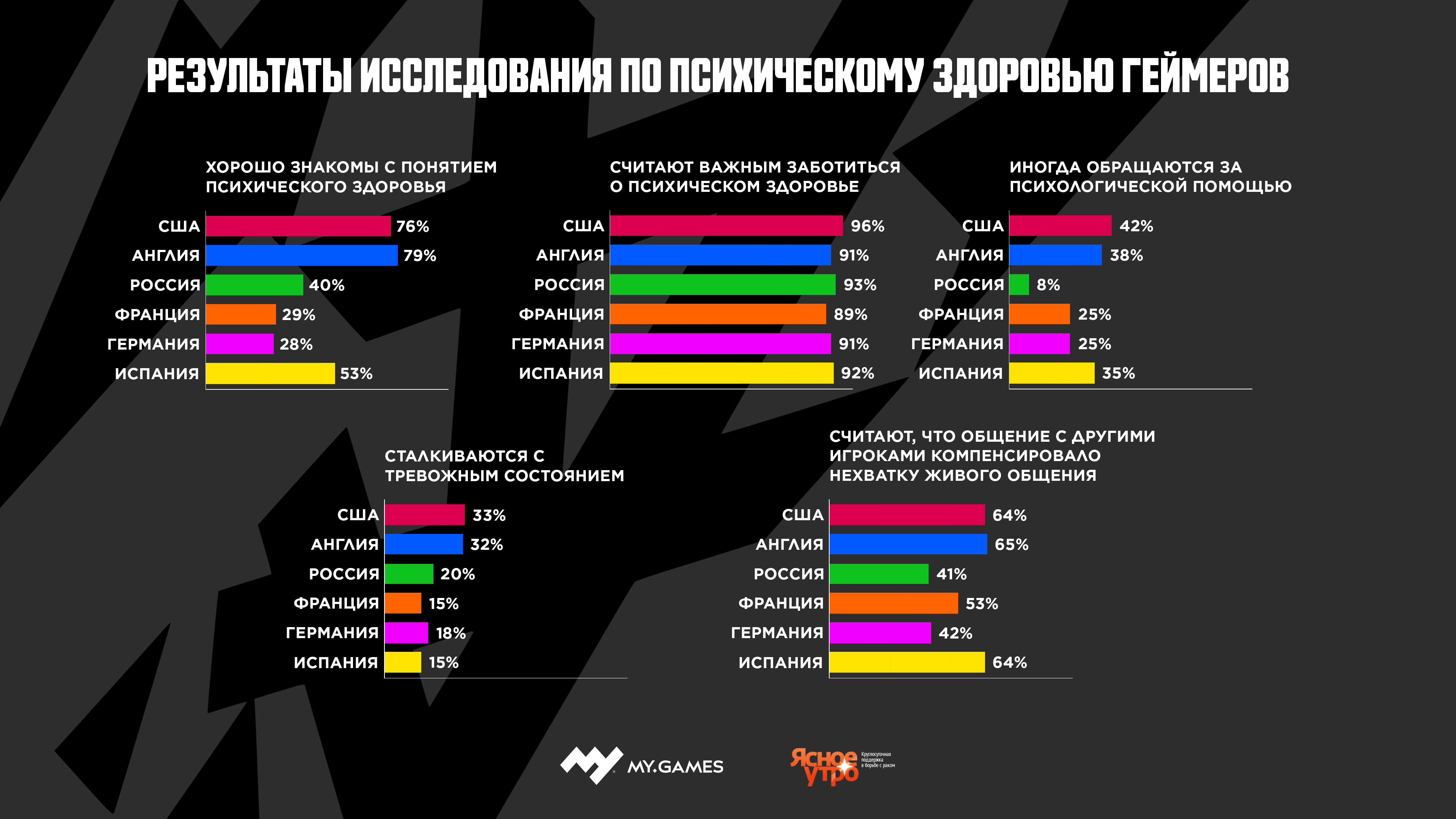 MY.GAMES опубликовал данные международного исследования о психическом здоровье геймеров в онлайн-играх.