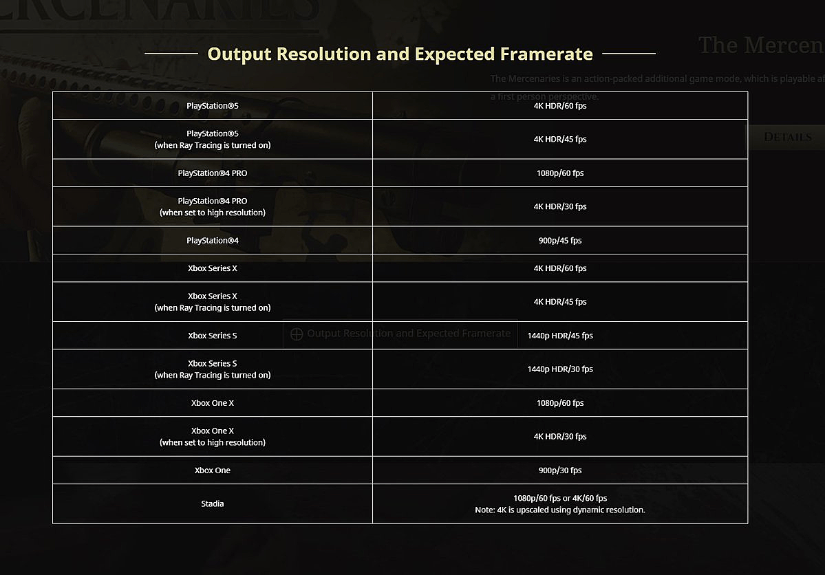 Также разработчики представили данные о производительности игры на каждой из платформ, на которых выйдет RE Village.