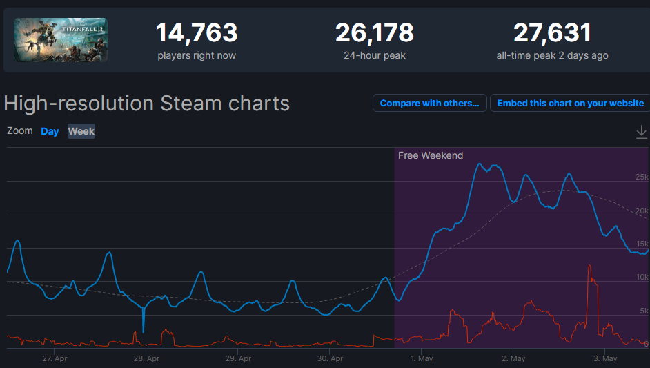 Titanfall 2 снова побила рекорд по пиковому онлайну в Steam. Теперь благодаря бесплатным выходным