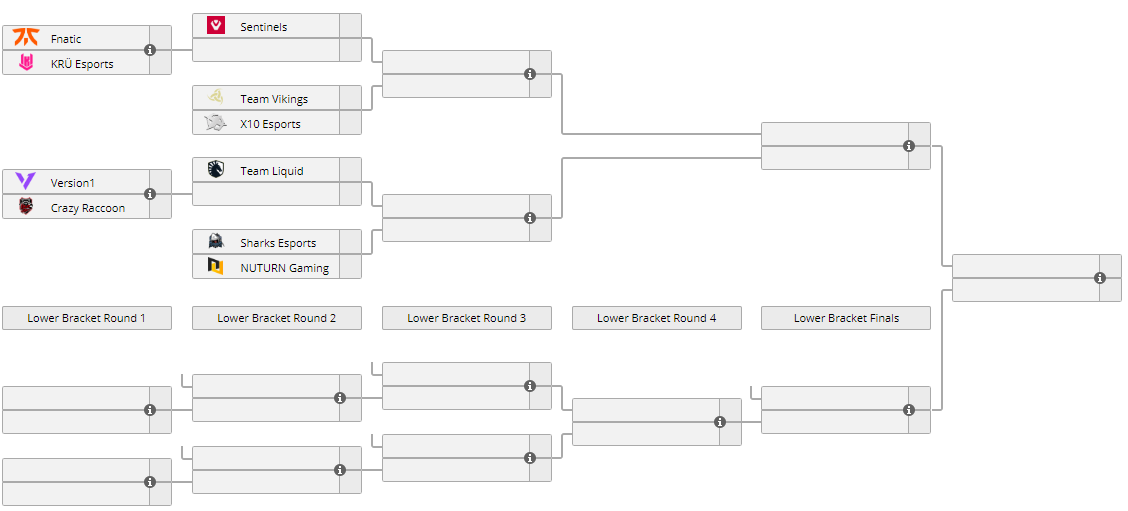В первом раунде чемпионата Fnatic (Европа) сыграет против KRU Esports (Южная Америка), а Version1 (Северная Америка) встретится с Crazy Racoon (Япония).